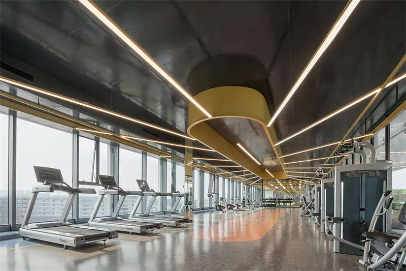 前廳頂部,鏡面質感與光帶反射,使空間得到延伸、重疊呼應,營造出多維的視覺效果,同時打破科技辦公室設計的刻板印象,擁有寬敞開放的前臺設計、待客區(qū),層次、質感、豐滿而厚重。