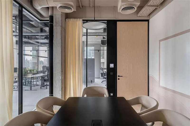 開放式空間因為穿插了大量的會議室而被分隔成若干小型區域;而那些由此形成的開放協作區則被賦以清新的色彩,強調其功能特性的同時也營造出一個活力多彩的空間表情,與此同時,這些空間也與其它區域一樣保持同樣的工業觸感和一致的基調。