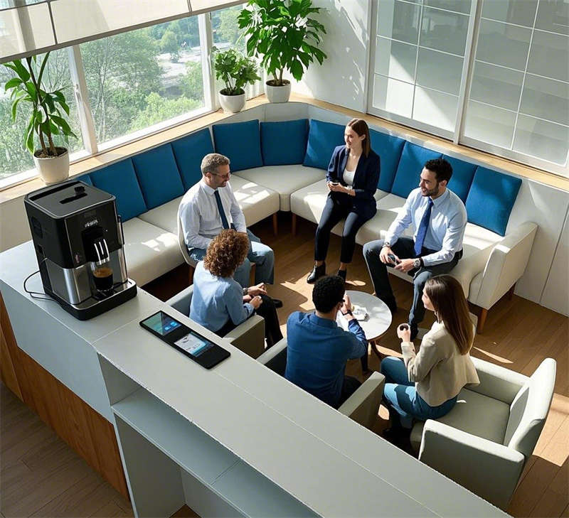 會議室配備全息投影和智能會議系統,為高效會議和創意碰撞提供空間。茶水間以智能咖啡機和舒適座椅為主,結合綠植點綴,打造輕松社交的休閑區域。休息區融入虛擬現實設備,讓員工在沉浸式體驗中放松身心。走廊通過燈光效果和藝術裝置,展現企業文化,實現空間過渡。