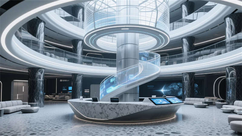 厘米級定位系統(tǒng)織就空間的數(shù)字神經(jīng)網(wǎng)絡(luò),實(shí)時(shí)感知行為軌跡的熱力圖譜。增強(qiáng)現(xiàn)實(shí)技術(shù)將虛擬協(xié)作層注入物理環(huán)境,會(huì)議紀(jì)要懸浮于白墻上空,項(xiàng)目進(jìn)度可視化流淌在地面光帶中。智能環(huán)境控制系統(tǒng)如同無形的指揮家,根據(jù)溝通場景自動(dòng)調(diào)節(jié)光域范圍與氣流速度,讓空間氛圍隨對話內(nèi)容自然脈動(dòng)。當(dāng)數(shù)字邏輯與建筑肌理深度融合,辦公室便升維為承載集體智慧的生命體。