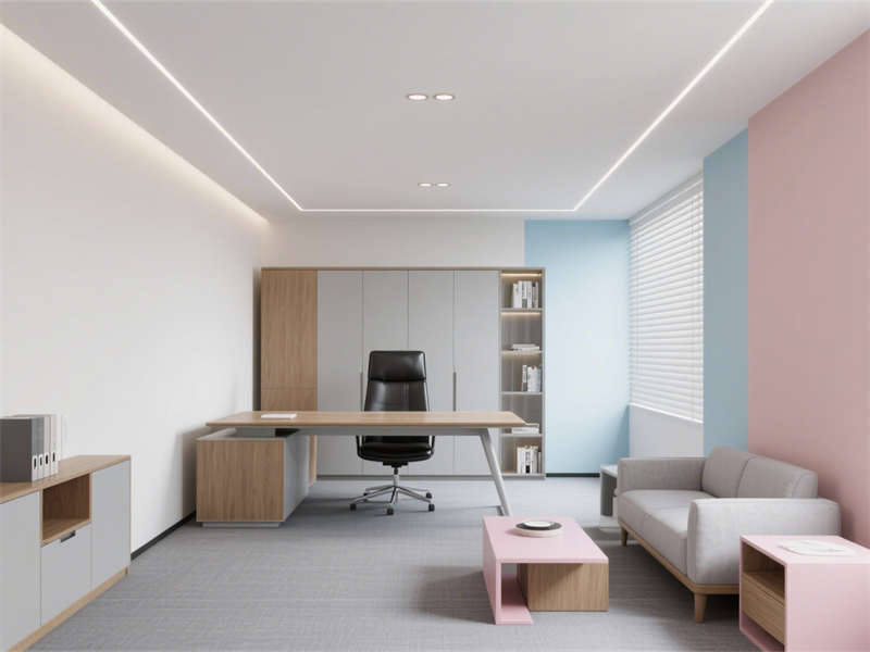 本設計以現代簡約風格為核心,搭配低飽和莫蘭迪色系,營造出高效且舒適的辦公氛圍,整體視覺風格高度統一,讓辦公空間既專業又不失溫度。?