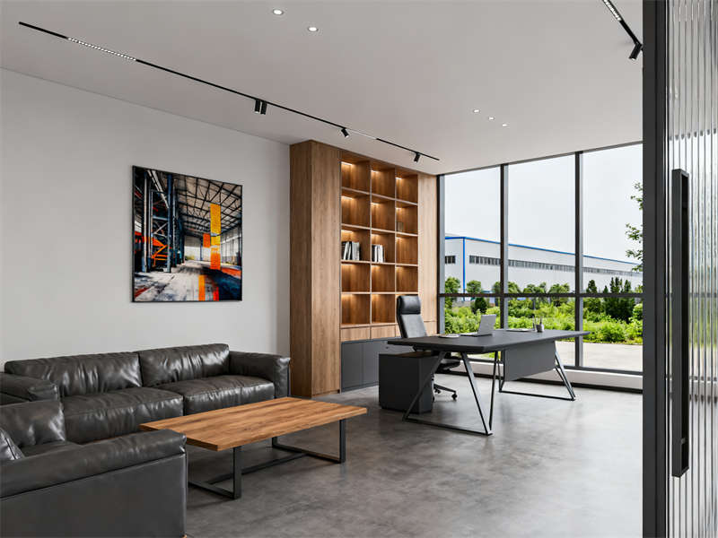 本設(shè)計聚焦合肥工廠辦公室的功能與美學(xué)融合,以極簡工業(yè)風為核心基調(diào),打造風格統(tǒng)一且兼具實用性的辦公空間。外觀設(shè)計上,深灰色外墻搭配大面積玻璃落地窗,既貼合工廠園區(qū)的工業(yè)屬性,又通過原木色雨棚增添溫馨感,讓建筑在簡潔中凸顯辦公場所的特質(zhì)。?
