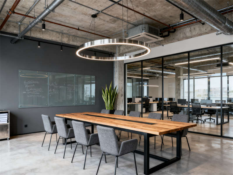 獨立辦公區(qū)域各有側(cè)重,總經(jīng)理辦公室通過辦公區(qū)與會客區(qū)的分區(qū)設(shè)計,營造層次感與商務(wù)氛圍;會議室的玻璃書寫墻與環(huán)形吊燈兼顧實用與設(shè)計感;財務(wù)室的檔案柜與地毯細節(jié),強化收納與靜謐屬性;茶水間以溫馨的操作臺與休閑區(qū),提供放松空間;技術(shù)研發(fā)辦公室則結(jié)合實驗操作臺與多接口工位,滿足專業(yè)辦公需求。整體設(shè)計在統(tǒng)一風格下,針對不同功能區(qū)域精準規(guī)劃,適配工廠辦公室的多元辦公場景。