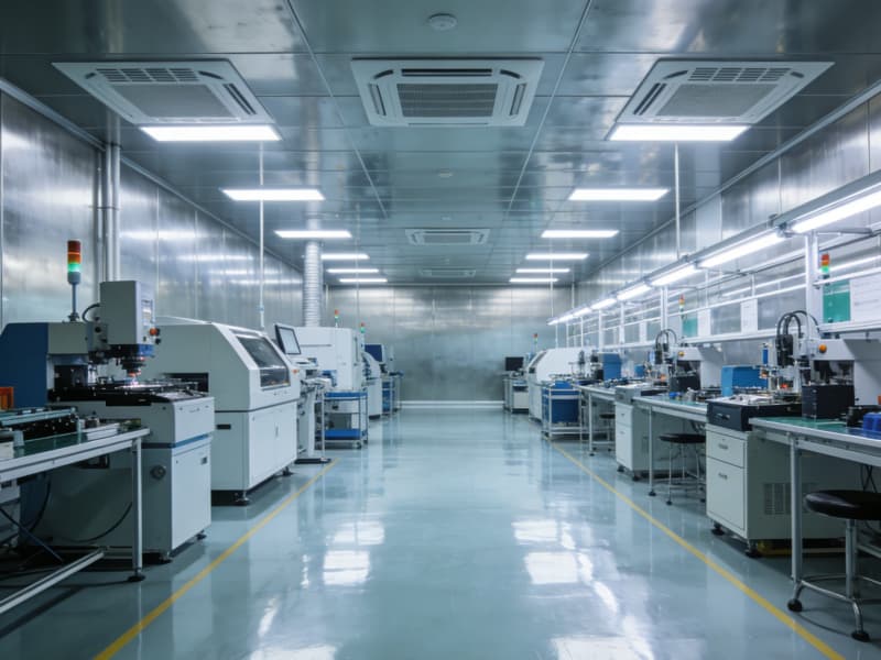 步入廠房內部,生產區空間布局嚴謹,為適應光學電子生產對環境的高要求,采用無塵車間設計。地面鋪設防靜電、防塵的環氧地坪,墻面選用光潔、易清潔的金屬材料,頂部配備先進的空氣凈化系統與無影照明燈具,確保生產環境的潔凈度與充足且均勻的光照。生產設備按照工藝流程有序排列,通過自動化輸送線連接,實現高效的流水作業。