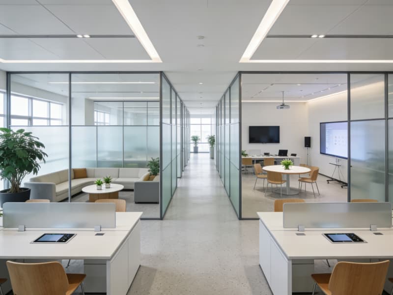 研發辦公區強調創新與協作氛圍,開放式的辦公空間采用靈活的隔斷設計,可根據團隊需求自由組合。辦公桌配備智能充電與數據接口,方便員工使用電子設備。會議室配備先進的多媒體展示與視頻會議系統,滿足跨地區的研發交流需求。辦公區還設置了休閑討論區,擺放著舒適的沙發與茶幾,搭配綠植,為員工提供放松與交流創意的空間。