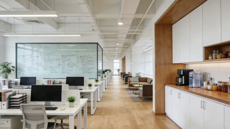 本項目為蚌埠核心區域 10000㎡辦公樓定制設計,以 “現代簡約 + 地域適配” 為核心,融合商務功能與美學體驗,打造高效、舒適且具地域辨識度的辦公空間。整體采用中性色為主色調,白墻灰地奠定沉穩基調,搭配本地實木元素注入暖意,材料兼顧質感與環保。空間布局靈活,涵蓋開放式辦公區、獨立辦公室、多功能會議室等,適配企業多元需求。綠植選用蚌埠本地適生品種,優化微環境的同時強化地域適配性,為辦公人員營造充滿活力的創作氛圍,助力企業提升辦公效率與品牌形象。