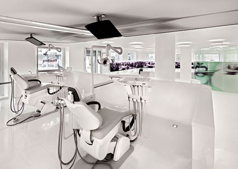 設計理念:牙科診所最終還是歸屬醫院范疇,給病人治病的。只是牙科診所可以在裝修上比醫院有更多的想法和創意的設計元素在里面。白色的地磚灰色的座椅使空間設計更嚴謹,傳遞出一種信任感并營造出臨床氛圍。