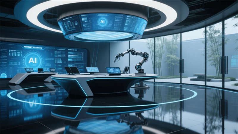 這座人工智能核心建筑以“人本科技”為基因,將自然生態(tài)脈絡(luò)植入未來(lái)科技肌理。流動(dòng)空間打破傳統(tǒng)辦公界限,智能大堂的垂直森林與數(shù)據(jù)藝術(shù)共生,協(xié)作艙如發(fā)光的神經(jīng)節(jié)點(diǎn)散布于開(kāi)放平面。實(shí)驗(yàn)室成為科技與自然對(duì)話的劇場(chǎng),玻璃幕墻外竹林隨風(fēng)搖曳,室內(nèi)數(shù)據(jù)流如星軌閃爍。