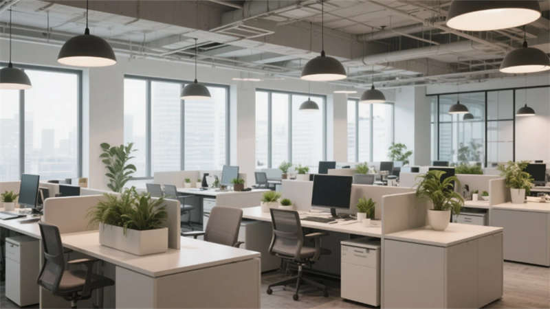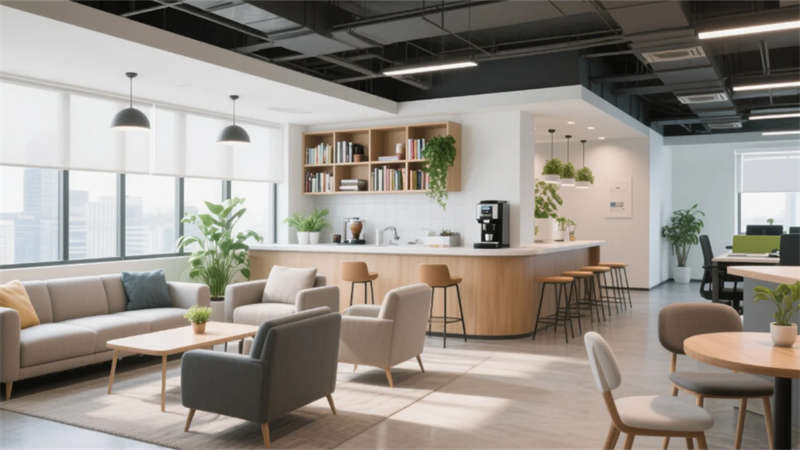 本辦公樓設計以簡約現(xiàn)代風格為核心,打造一個統(tǒng)一而流暢的空間體驗。整體強調(diào)功能性、舒適性和美學平衡,每個功能區(qū)均采用中性色調(diào)、干凈線條和自然元素,營造出寧靜和諧的環(huán)境。大堂入口以開放通透的布局迎接用戶,結(jié)合玻璃幕墻和木質(zhì)細節(jié),傳遞專業(yè)而溫馨的第一印象。開放式辦公區(qū)通過模塊化家具和充足采光,促進團隊協(xié)作與效率。會議室設計注重靈活性,透明隔斷和集成設備支持高效交流。員工休息區(qū)和餐廳咖啡吧作為社交中心,提供舒適休閑空間,增強員工福祉。經(jīng)理辦公室平衡隱私與開放性,簡約家具營造專注氛圍。走廊和衛(wèi)生間延續(xù)統(tǒng)一美學,注重清潔與引導性,確保空間銜接自然。