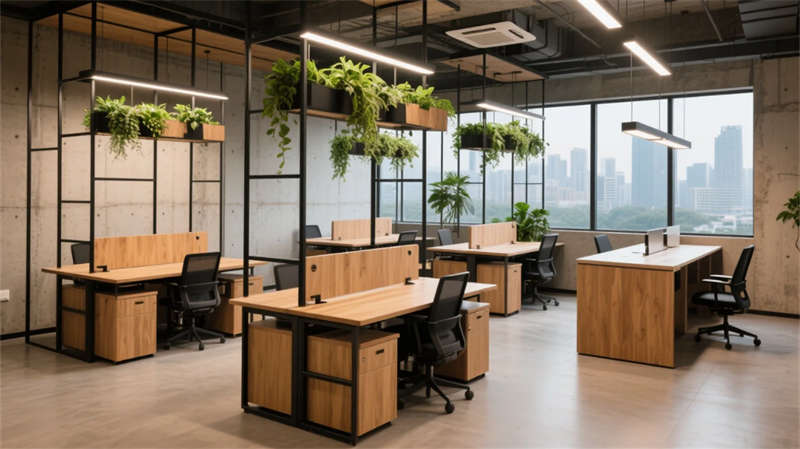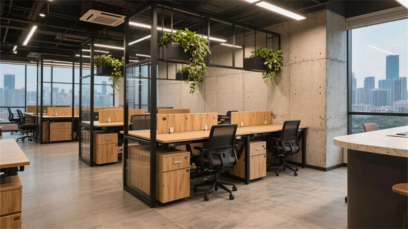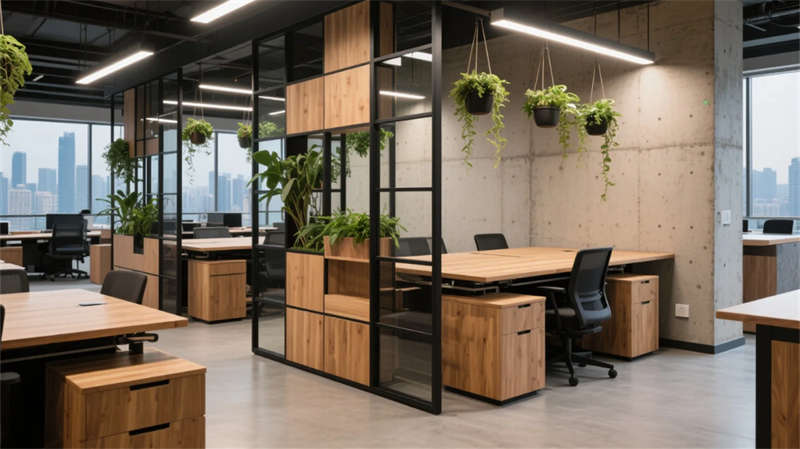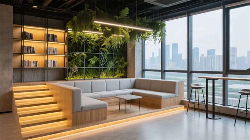 本項目以“自然滲透”與“靈活共生”為核心,將輕工業風的理性框架與生態綠意巧妙融合。空間打破傳統辦公割裂感,通過綠植墻體、透光天井與流動線條,在合肥城市肌理中營造出呼吸感十足的職場綠洲。