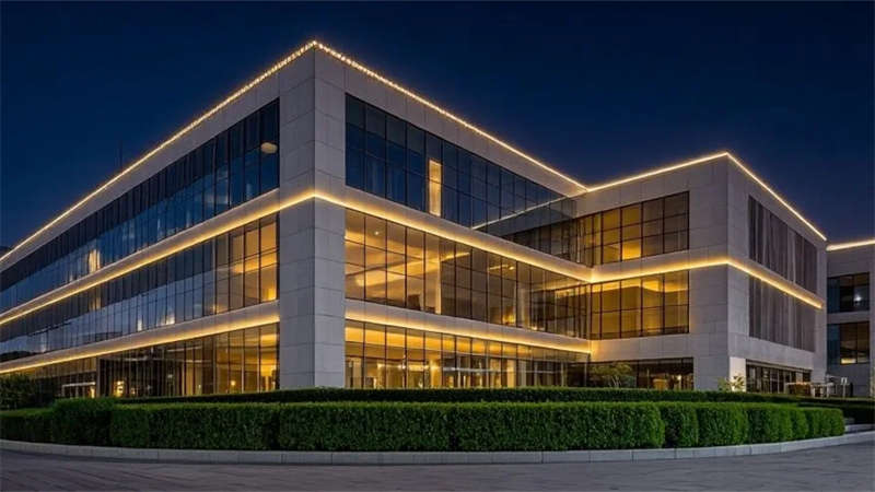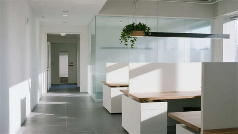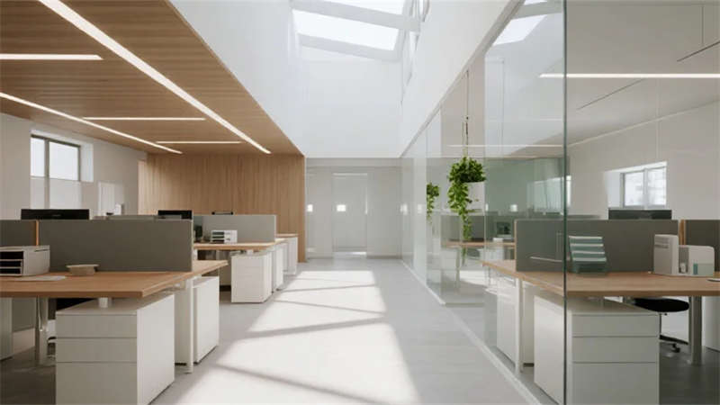 內部空間聚焦人性化體驗:開放式辦公區借由落地窗引入充沛自然光,搭配原木元素軟化工作氛圍;會議室以通透玻璃隔斷實現靈活協作;休閑咖啡區則通過暖調燈光與弧形家具構建松弛社交場景。屋頂花園將城市景觀轉化為員工休憩靈感源,模糊室內外界限。