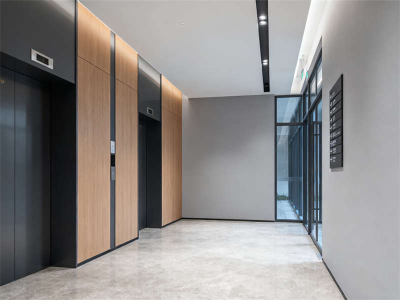 入口大堂以開闊格局為核心,淺灰地磚搭配低飽和木色前臺,弱化厚重感的同時,用金屬線條勾勒細節,讓第一印象既專業又通透。玻璃隔斷貫穿多個區域,在走廊處搭配木色門牌,既保證采光,又通過材質呼應強化整體感,避免空間割裂。