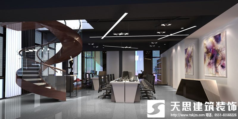 員工辦公空間設(shè)計(jì)應(yīng)根據(jù)工作需要和部門人數(shù)并參考建筑結(jié)構(gòu)設(shè)定面積和位置。首先應(yīng)平衡各室之間的大關(guān)系,然后再作室內(nèi)安排。布置時(shí)應(yīng)注意不同工作的使用要求,如對(duì)外接洽的,要面向門口;做文案和設(shè)計(jì)的,則應(yīng)有相對(duì)安靜的空間。還要注意人和家具、設(shè)備、空間、通道的關(guān)系,確保使用方便、合理、安全。辦公臺(tái)多為平行垂直方向擺設(shè)。大的辦公空間,做整齊的斜向排列也頗有新意,但要注意使用方便和與整體風(fēng)格協(xié)調(diào)。