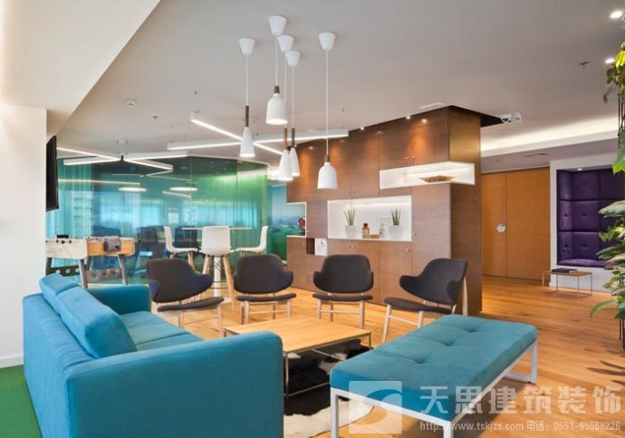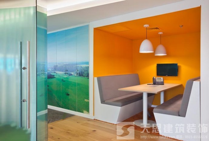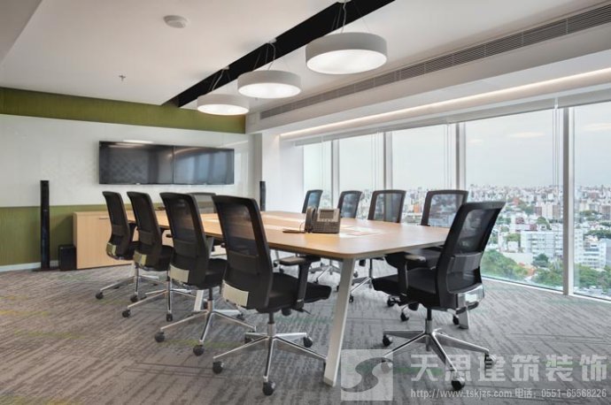 會議室的設(shè)計(jì):設(shè)計(jì)師在設(shè)計(jì)的時候,將其安置在靠近窗戶的空間區(qū)域中,在設(shè)計(jì)師看來會議是企業(yè)發(fā)展所不可替的,但是設(shè)計(jì)師希望可以改變會議室給人枯燥、無味的感覺,故此設(shè)計(jì)師將采光、室外景色通過設(shè)計(jì)的手法將其引入室內(nèi),讓會議變得有趣起來。