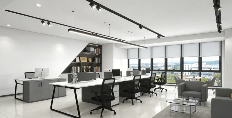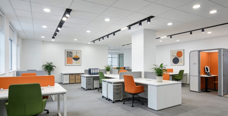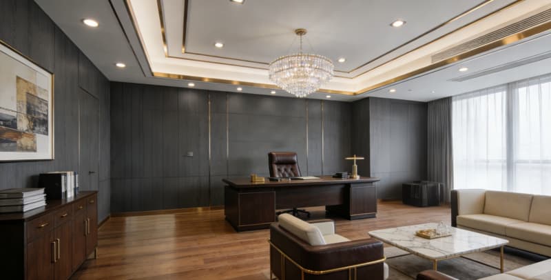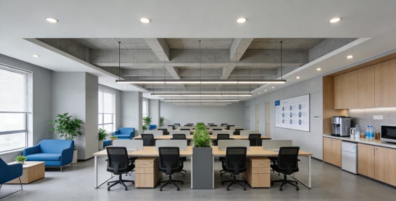 本廠(chǎng)房設(shè)計(jì)以“實(shí)用與美學(xué)共生,工業(yè)與現(xiàn)代交融”為核心,針對(duì)亳州企業(yè)生產(chǎn)與辦公需求,打造4500㎡多功能復(fù)合型空間。外觀采用深灰氟碳噴涂鋁板搭配Low-E玻璃幕墻,以橙色線(xiàn)條點(diǎn)綴,12米通高玻璃入口與金屬發(fā)光LOGO彰顯大氣,太陽(yáng)能光伏板融入屋頂設(shè)計(jì),兼顧質(zhì)感與環(huán)保。生產(chǎn)區(qū)域按需分區(qū),車(chē)間1以金剛砂地坪與裸頂設(shè)計(jì)適配重型生產(chǎn),車(chē)間2采用潔凈彩鋼板與環(huán)氧樹(shù)脂地坪,滿(mǎn)足無(wú)塵標(biāo)準(zhǔn)。辦公區(qū)多元適配,涵蓋簡(jiǎn)約行列式、靈動(dòng)島型及極簡(jiǎn)獨(dú)立工位,搭配PVC地板、地毯等材質(zhì),以淺灰、原木色為基,點(diǎn)綴鮮活色彩。會(huì)議室與總裁辦公室則通過(guò)木飾面板、實(shí)木地板等材質(zhì),分別營(yíng)造專(zhuān)業(yè)與輕奢氛圍。整體設(shè)計(jì)平衡工業(yè)質(zhì)感與現(xiàn)代舒適,明確功能分區(qū),適配企業(yè)高效生產(chǎn)與辦公需求。