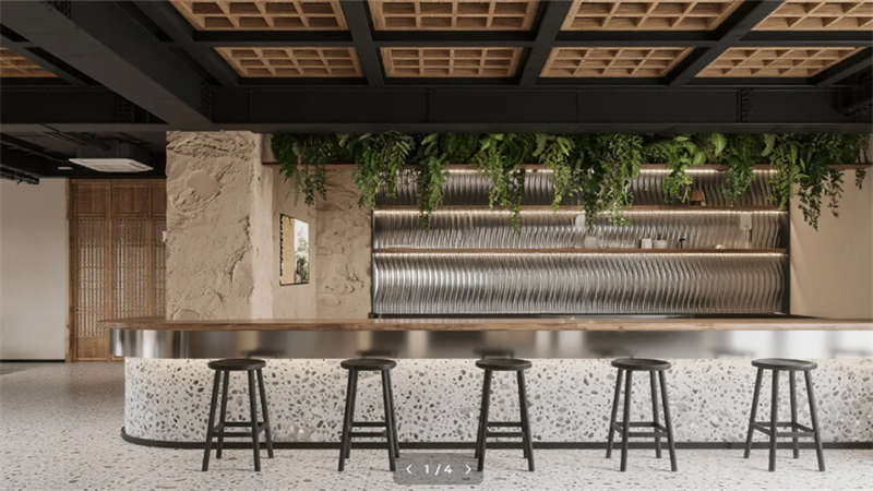 新中式工業風骨架支撐起詩意場景,智能光療系統與磁吸供電科技隱于無形。云會議艙的煙雨江南數字畫卷,與夯土吧臺的粗糲質感形成時空回響。這里不僅是效率容器,更是滋養人文精神的山川微縮劇場,在機械理性中重建天人合一的當代范本。