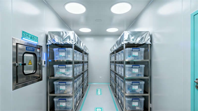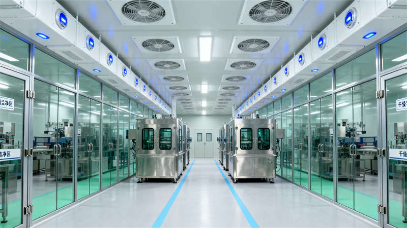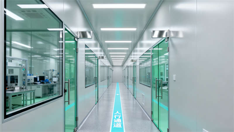 室內(nèi)空間劃分清晰,入口風(fēng)淋室作為潔凈第一道防線,搭配專屬衣柜區(qū),助力人員規(guī)范進(jìn)入;核心生產(chǎn)區(qū)以通透玻璃隔斷劃分,搭配高效過濾設(shè)備,營(yíng)造潔凈通透的操作環(huán)境,操作人員身著專業(yè)潔凈服,盡顯規(guī)范作業(yè)氛圍。輔助區(qū)域同樣注重細(xì)節(jié),物料暫存間采用防塵物料架與傳遞窗設(shè)計(jì),確保物料潔凈存儲(chǔ)與轉(zhuǎn)運(yùn);無菌實(shí)驗(yàn)室配置專業(yè)安全柜與試劑柜,滿足高潔凈等級(jí)操作需求;潔凈走廊通過清晰標(biāo)識(shí)引導(dǎo)動(dòng)線,連接各功能區(qū)域,提升空間流轉(zhuǎn)效率;空調(diào)機(jī)房作為動(dòng)力核心,設(shè)備布局規(guī)整,保障整體潔凈系統(tǒng)穩(wěn)定運(yùn)行。?