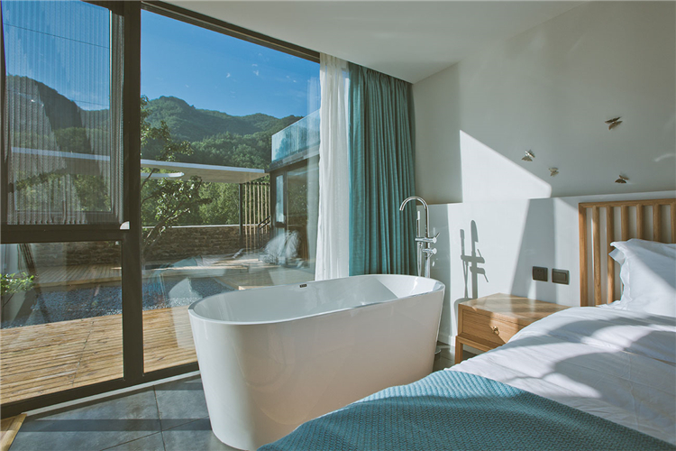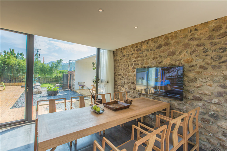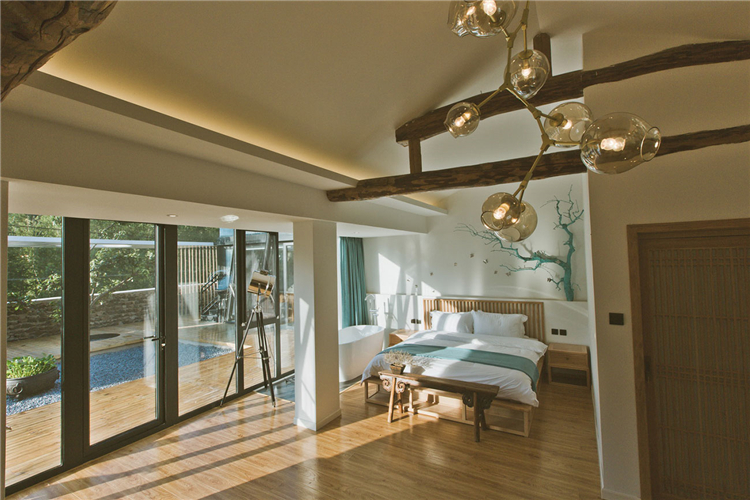 “隨著越來(lái)越快的生活節(jié)奏我們每天奔忙,每天遺忘城市越來(lái)越近,鄉(xiāng)村卻越來(lái)越遠(yuǎn)”。這所名為“畫(huà)框里”的民宿位于水泉子村,而名字寓意為將百里畫(huà)廊的山水美景留在畫(huà)中院中。可看到名副其實(shí)靈動(dòng)的山水畫(huà)這四季的變幻,凝集了我們對(duì)生活所有的向往。落地窗邊放置了浴缸做一個(gè)泡泡浴一眼望去是院落的美景和遠(yuǎn)山的意境。主臥空間很寬敞,新中式的原木配灰色的簡(jiǎn)易家具些許的現(xiàn)代元素金屬攝影燈使房間內(nèi)多一份輕松感。