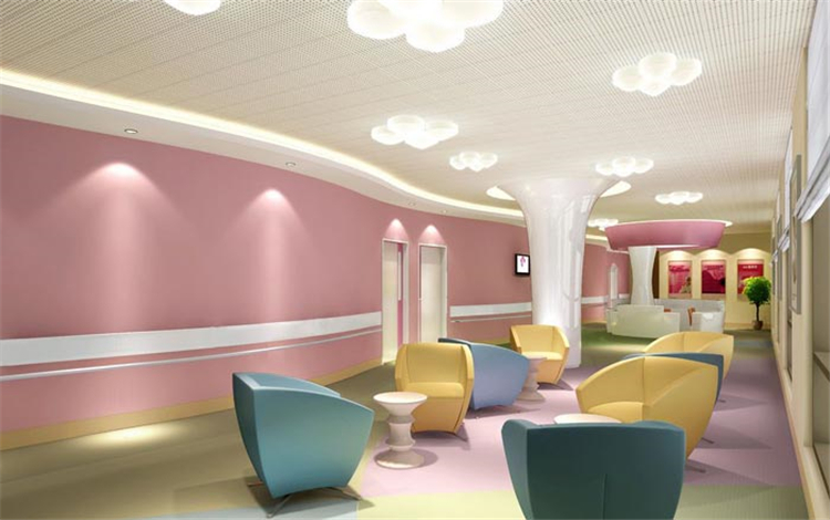 設(shè)計理念: 婦女兒童醫(yī)院裝修設(shè)計之初,設(shè)計師就不斷吸收建筑設(shè)計中“母親懷抱小孩”的理念。在經(jīng)過和業(yè)主之間的交流,深入了解醫(yī)院的院系文化、歷史背景、管理理念和價值觀取向,結(jié)合婦女兒童這兩種特定人群進行設(shè)計思考。醫(yī)院以產(chǎn)科、婦科、兒科為主要服務(wù)對像,設(shè)有女性溫馨門診,婦科腔鏡中心、兒童“卡通”門診。病區(qū)設(shè)有中高檔床位90張,擁有VIP尊貴病房,設(shè)計師為了讓病房家庭化,對病房進行了重點設(shè)計,定位于溫馨的病房。在病房區(qū)域的大廳,設(shè)計師引入了自然的光照、加入了休閑的風格,定位于陽光休閑大廳。音樂候診咖啡吧,全方位滿足客患個性化需求,營造生態(tài)化、人文化就醫(yī)環(huán)境。