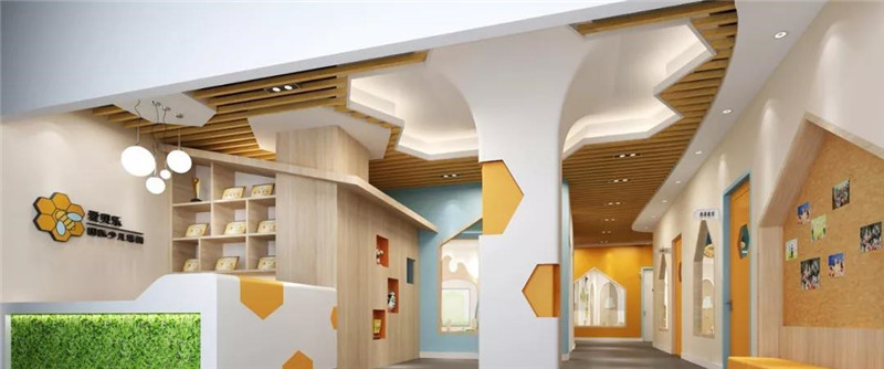 將品牌形象貫穿空間始終,加深品牌印象和空間趣味,也寓意學(xué)習(xí)語(yǔ)言要像勤勞的蜜蜂一樣付出努力,慢慢累積,最終收獲甜蜜的果實(shí)。