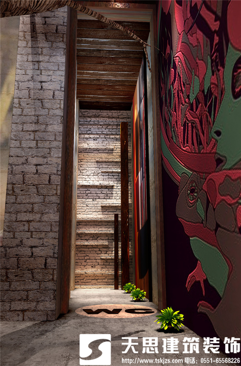 逆向思維的設計方式可見一斑,元素多為金屬鋼鐵、老榆木、清水混凝土等自然普通材質。當這些材質與彩色燈帶彼此碰撞,律動感瞬間迸發而出,同時他巧妙運用反襯和撞色技巧塑造了空間,并未刻意用常規的大面積燈光來營造絢麗空間,反而有意料之外的驚喜。鏤空隔斷打造開放式格局,讓每一位顧客感受到流暢開闊的空間構造,敞開心扉放肆的在I FINE酒咖尋找自我。