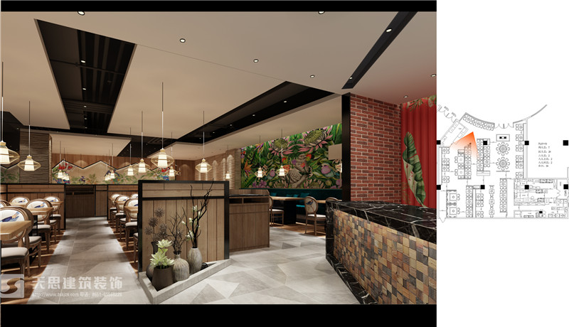 火鍋店是全國上下都喜歡的美食,起源于四川,遍布于全國甚至全球。人們不但在這里享受美食帶來的快樂,同時也開展人際交往、增進感情等活動和作用。讓顧客安全、愉快、舒暢地享受美食的樂趣,享受人際交往的樂趣,是一個裝修公司的重要任務(wù)。天思裝飾擁有多年的裝修施工和設(shè)計經(jīng)驗,專業(yè)化的設(shè)計視角打造特色的火鍋店裝修。在企業(yè)營銷活動中借鑒各類文化因素,有效地豐富餐飲品牌的內(nèi)涵。對于火鍋店的裝修也要花些心思,才能提高餐飲店的鮮明的個性和地域特色。天思裝飾,專業(yè)的合肥火鍋店裝修設(shè)計公司,還提供合肥火鍋店裝修報價和經(jīng)典的火鍋店裝修效果圖,并承接外地的火鍋店裝修設(shè)計及施工。