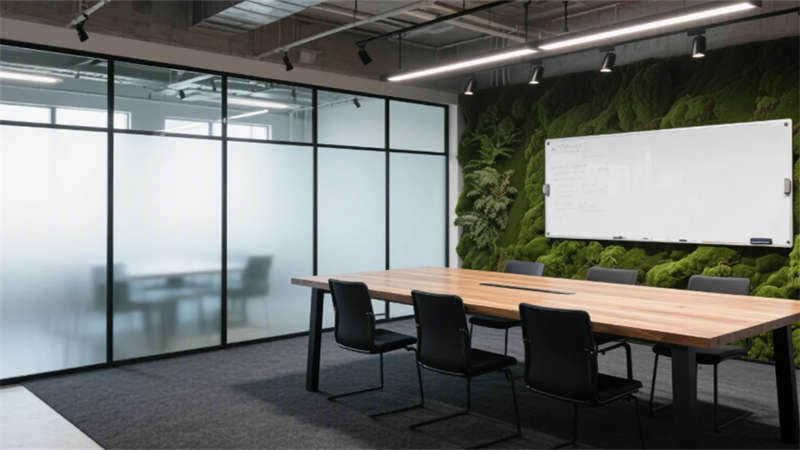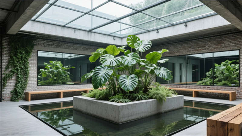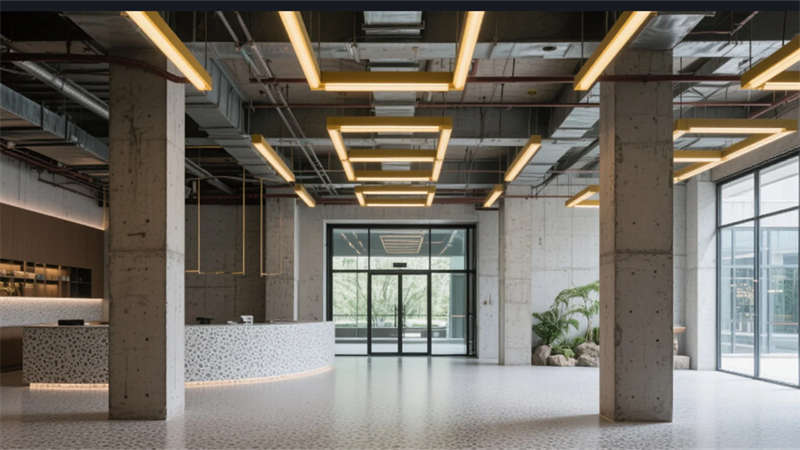 設(shè)計將機械的冷靜與自然的呼吸編織為共生語言。裸露的鋼骨結(jié)構(gòu)承載生產(chǎn)使命,而攀附的綠植、原木肌理與暖光,則為空間注入生命脈搏。合肥堅韌務(wù)實的精神被轉(zhuǎn)化為混凝土立柱與苔蘚墻的碰撞——冷硬材質(zhì)因生長而柔軟。