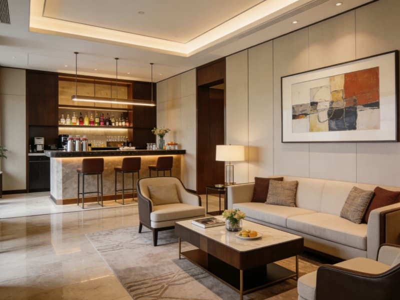 五層為特色配套層,設有行政酒廊、健身房與SPA區(qū)。行政酒廊提供專屬服務,健身房配備先進器材,SPA區(qū)以自然色調(diào)為主,搭配舒緩音樂,讓客人放松身心。