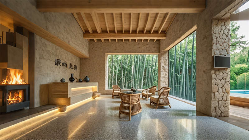 某江淮水岸民宿以“水系文明”為線索,入口設置霧幕投影再現淝河古渡,走廊地面鑲嵌歷代治水銘文玻璃磚,頂層露臺通過光影秀演繹巢湖流域生態變遷,形成沉浸式文化長廊。