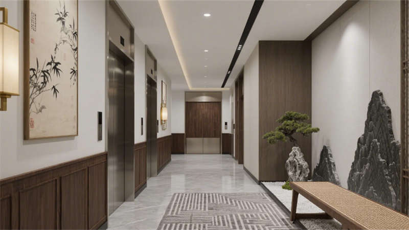 從外立面漸變格柵光影,到電梯廳微型枯山水,設(shè)計以“少即是多”的克制,讓東方精神在當(dāng)代場景中自然生長,成就一座可游、可居、可品的精神容器。