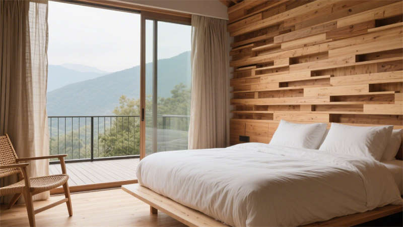 私密客房延續整體風格,床具與家具均選用簡約線條的原木款式,搭配淺灰色床品與局部的自然織物,營造出松弛的休憩環境。細節處,墻面裝飾以天然石材切片與手工陶藝,地面鋪設防滑耐磨的原木紋地板,既保證實用功能,又強化了自然質感。整個設計沒有多余的繁復裝飾,而是通過材質的碰撞、光影的變化與色彩的協調,讓每一處空間都傳遞出 “歸于本真” 的居住理念,為入住者提供遠離喧囂、親近自然的休憩體驗。