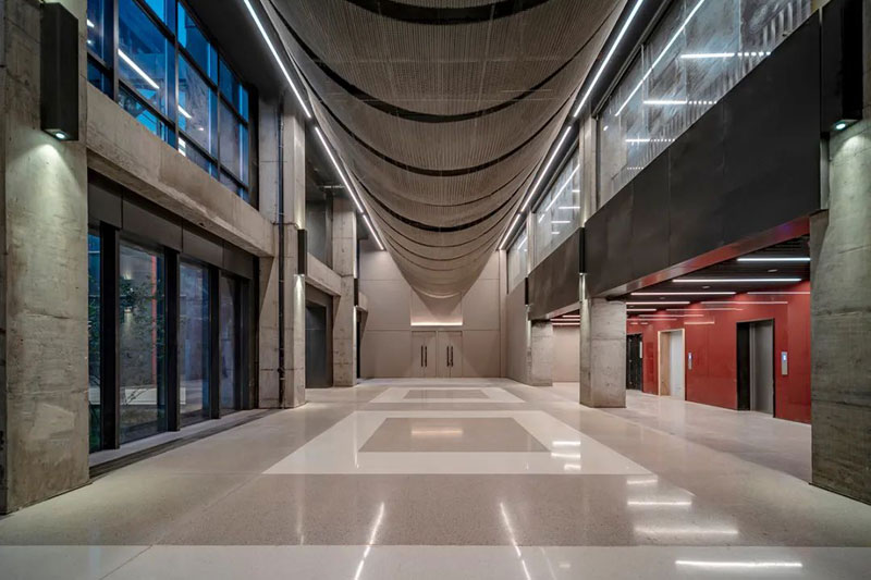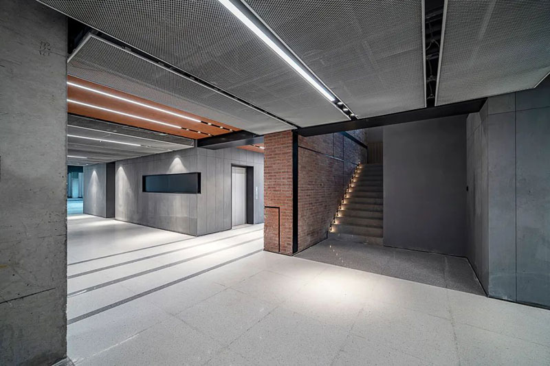 使用材料多以粗獷的質感呈現,水泥漆、灰泥、銹鋼板、金屬網、水泥板,還有裸露的混凝土,表現出工業建筑豪放的質感。奔放、濃重、豁達,形成室內公共空間的性格。