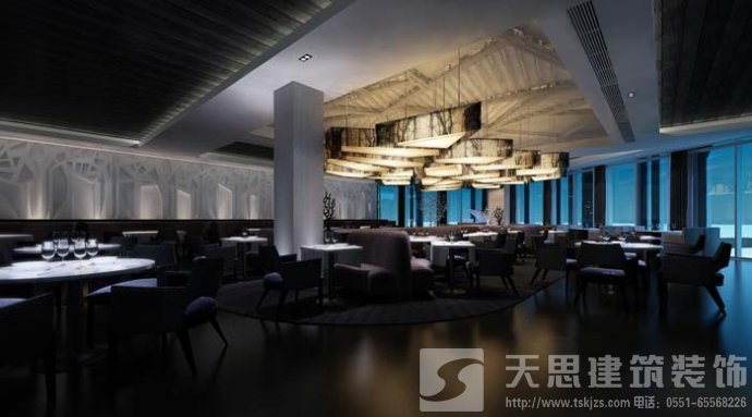 總設計說明:本案集餐廳和酒吧于一體,主題為樹影婆娑,采用大量的直線和簡單形體元素。給人的感覺是舒適、魅力、神秘、時尚、嫵媚。