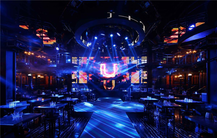 主舞臺背景為整面的LED智能大屏,配合音樂播放時下最潮流動感的畫面,正前方"U"字形DJ臺,結合創(chuàng)意燈光效果,更顯熱血酷炫.兩側對稱的空中秀廊是設計的一大亮點,透明的走廊,舞者可以在上面盡情舞動,360度全方位展現(xiàn)自己的舞姿.