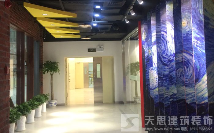 以下圖片,節(jié)選自待完工的工地現(xiàn)場(chǎng),分別是入口、大廳、過(guò)道、教室、活動(dòng)中心等功能區(qū)域。整體選擇LOFT混搭風(fēng)格,裸露的天花板+墻面,搭配現(xiàn)代元素,既節(jié)省了裝修成本,也營(yíng)造了“藝術(shù)人生”的環(huán)境。
