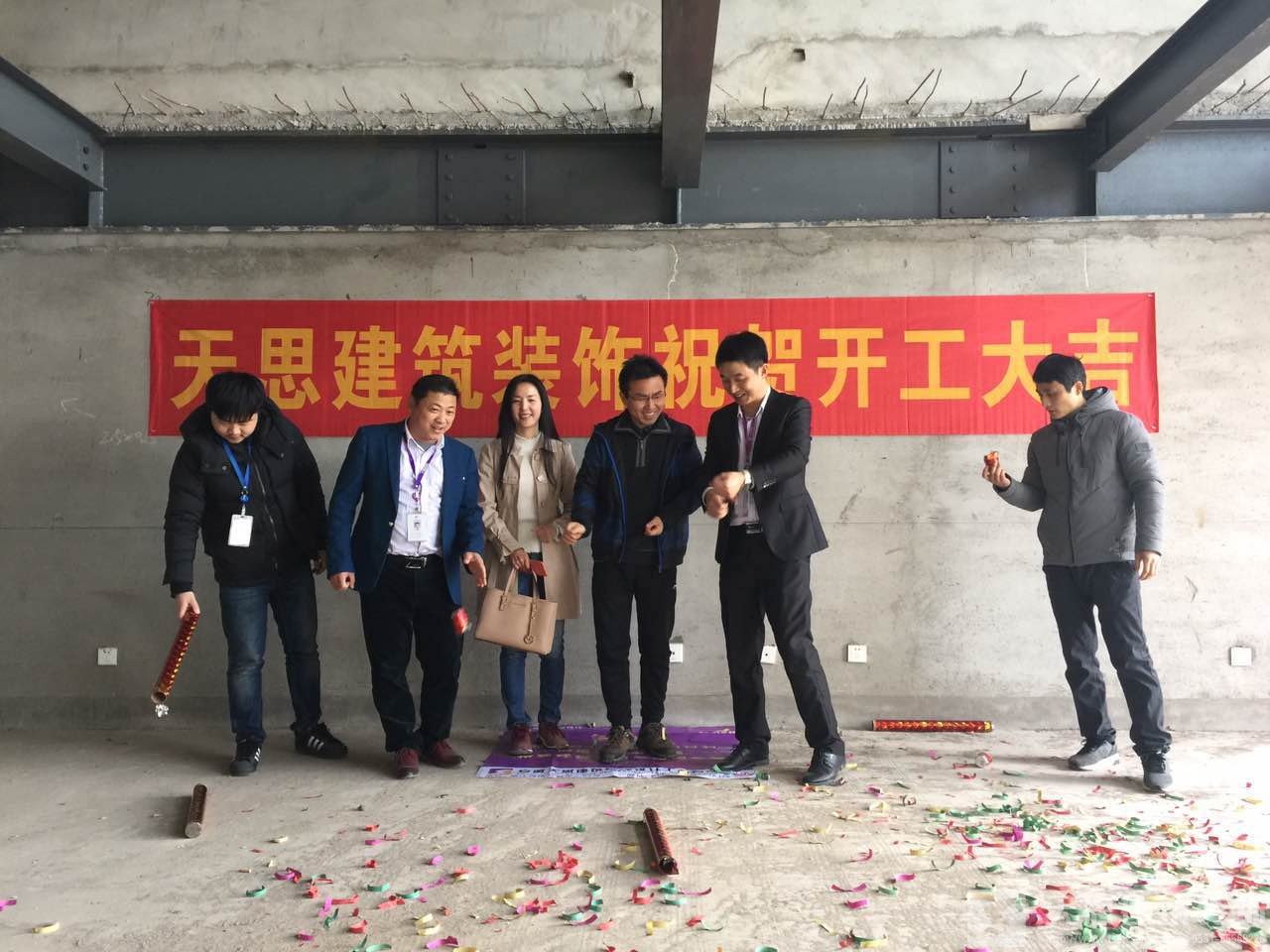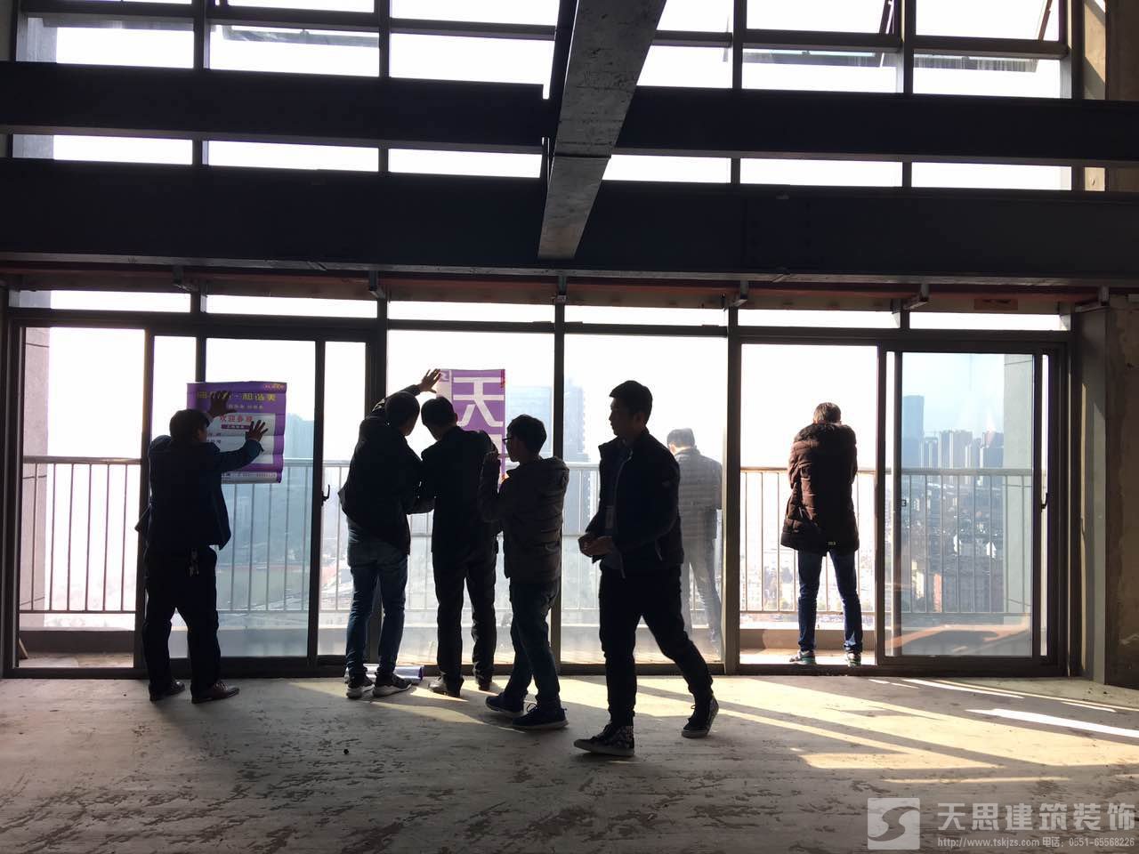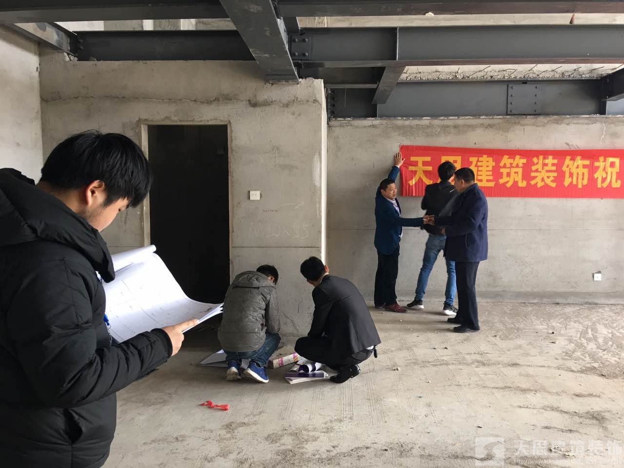 合肥黃金廣場辦公室裝修項目由我公司承接前期設計任務與后期工程施工任務,從一開始的設計方案撰寫、到平面布局的構思與繪制、再到與甲方的多次溝通與交流、設計效果的表現、施工圖的繪制等等工作。終于到今天,該項目于3月6號正式開工。為此我公司該項目執行設計師郭工、胡工、工程負責人劉工等都趕到現場,為開工做著準備工作。我公司已經安排工人進場,現場施工條幅已經拉起。接下來的施工正按計劃有步驟地進行。