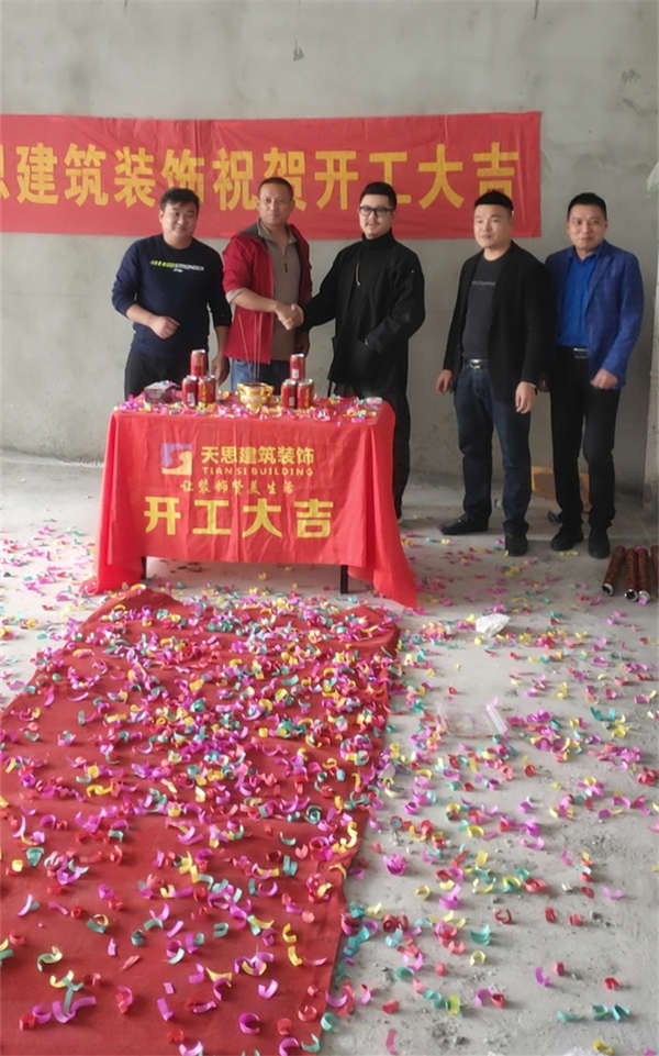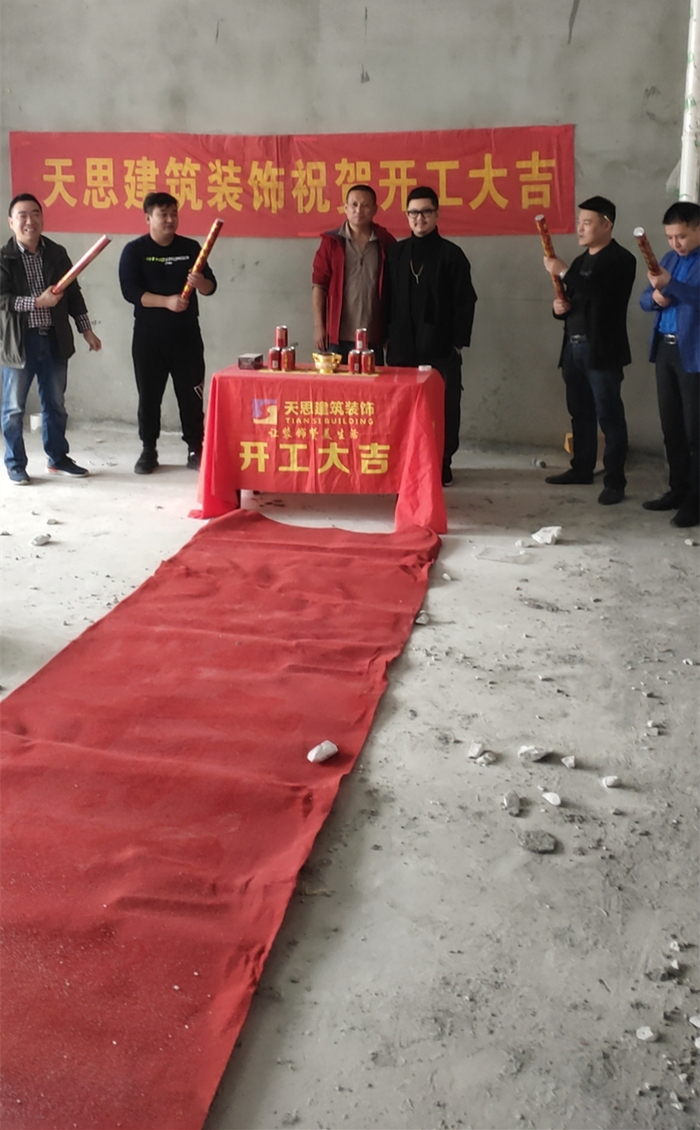 喜慶的開工桌,龍頭開工錘,鮮花美酒水果為此次開工儀式營造了一個喜慶、和諧、美滿的氛圍,預示著整個項目的平安順利,和諧美滿,也預?;疱伒觊_業后能夠財源廣進.