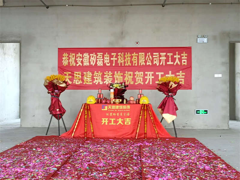 天思建筑裝飾公司全體員工在此恭賀安徽矽磊電子科技裝修開工大吉,感謝業主對我們公司的信任,公司也會以一個專業的水準將這個項目完美完成!安徽天思建筑裝飾專業提供教育機構的設計,施工服務,質量有保障。以下為開工現場。讓我們一起期待成品。