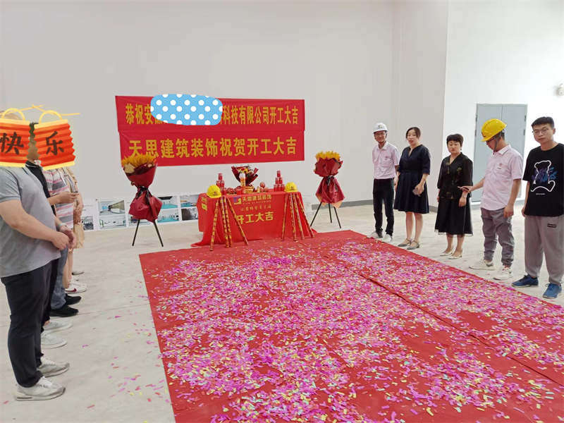 天思裝飾在此攜全體員工恭祝安徽一2000平科技廠房開工大吉!!!感謝業(yè)主對我們天思建筑裝飾的信任,我們必不負所托,保證工程的效率與質(zhì)量,將項目完美完成,交給客戶一份滿意的答卷!