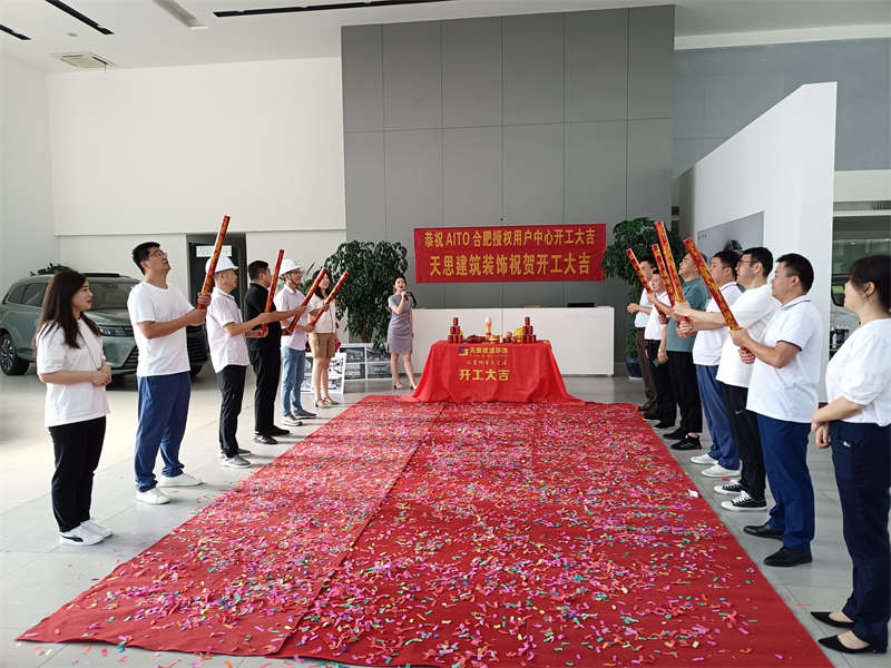 2022年8月5日,我們又迎來了新項目的開工,在這里安徽天思裝飾全體員工恭賀AITO合肥授權(quán)用戶體驗中心裝修工程開工大吉!開工儀式于項目現(xiàn)場隆重舉行。現(xiàn)場禮花飛舞,開工錘聲音響徹工地每一個角落,讓我們再一次恭祝AITO合肥授權(quán)用戶體驗中心開工大吉!