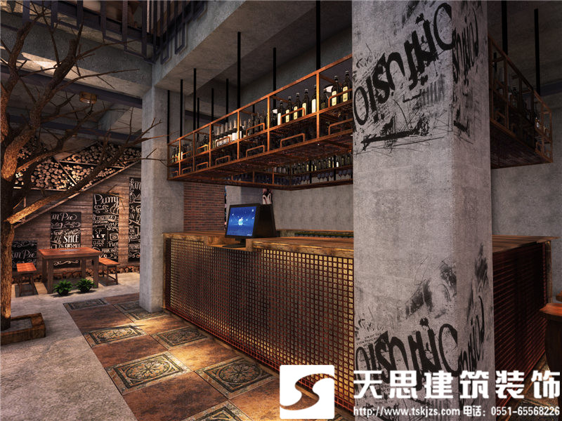 樓梯一角的別致風景,雖材質簡陋卻頗為入得人心。小板凳吧臺式火鍋店,在把握簡單大方的設計基礎上,巧用新穎造型和空間氛圍營造,打造出一個別具味道的火鍋店。
