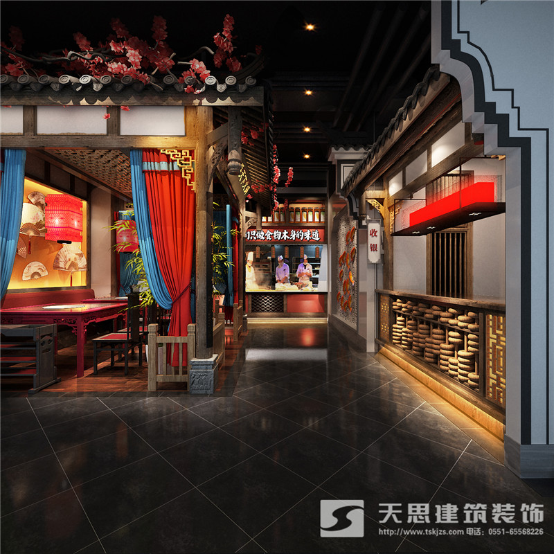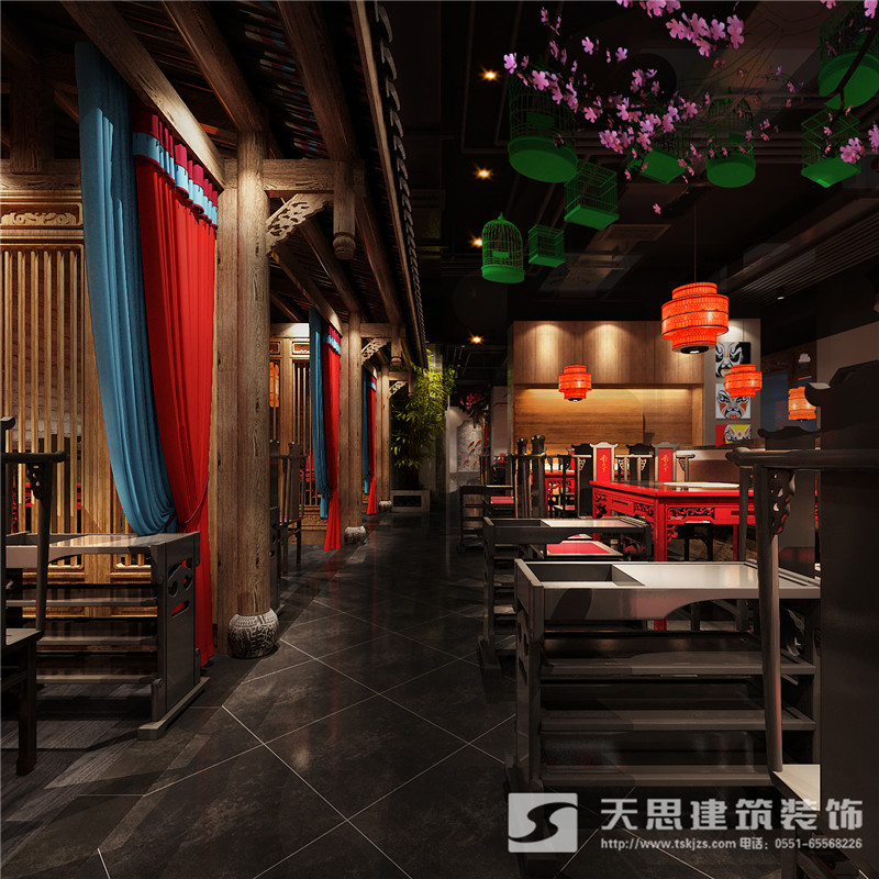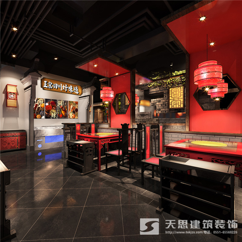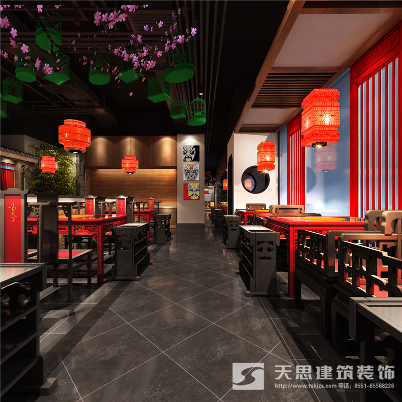 本次為合肥香天下火鍋店分店徽淮南店裝修設計效果,在本次火鍋店設計中,設計師采用新中式做為空間設計風格,設計師希望讓客戶在這里感受到不一樣的氛圍。
