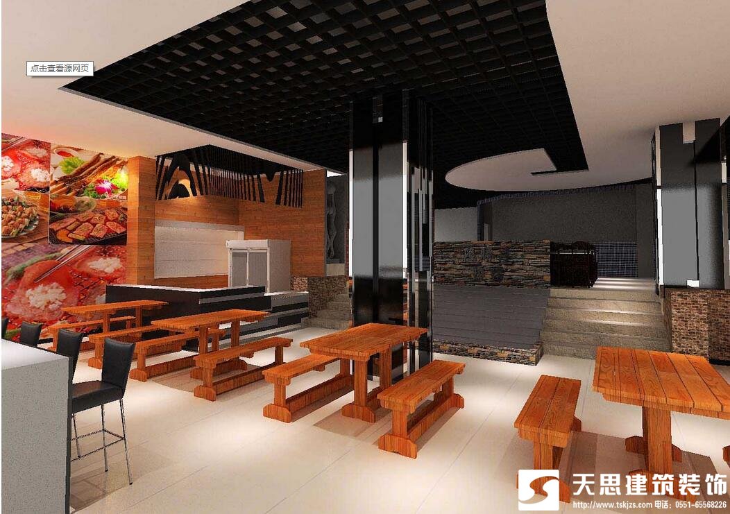 1、燒烤店裝潢設計桌椅的配置:桌椅的選擇簡單就好,但是椅子再怎么簡單都必須要有靠背,這個非常的有必要,要不客人會很累,而且稍微不穩當就會發生仰面朝天 的事情,最主要的還是一個舒適度。桌子選擇一些木質的,感覺看起來比較厚重的款式,桌面上鋪上厚玻璃最好,這樣在打掃時會方便很多而且看起來桌面透亮,美 觀不少,不然時間長了任何桌子表面都會出現褪色的情況。