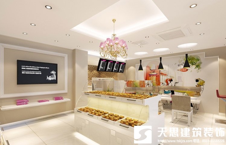 店鋪內部的布局要合理,一些主要的商品擺放在顯眼的地方,商品的擺放也要大小排列均勻,能讓消費者一目了然,從而有一個好的心情增加購買欲望。可以增加一些休閑桌椅,可以直接品嘗現做的食物。收銀臺一般設置在進門處,可以方便顧客結賬,也巧妙的利用了空間。燈光的選擇上會掛一盞水晶吊燈搭配其它筒燈,燈光照在食物下,顏色變得更鮮艷新鮮,更有食欲感。把蛋糕店的裝修設計好,是提高競爭力的必然要求,把店鋪營造成有魅力又溫馨的感覺,就比較容易留住你的顧客。
