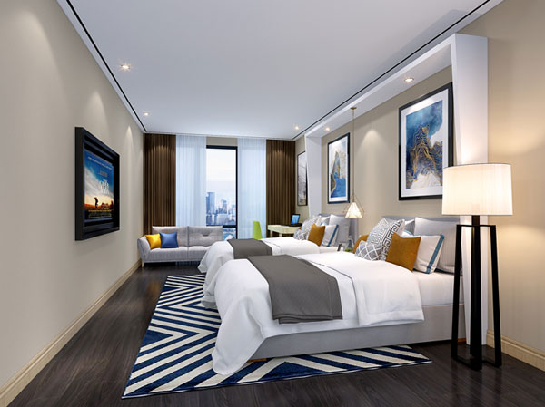 1、建筑面積:40-50平方米/每間客房(包括公攤、公共、后勤面積)。