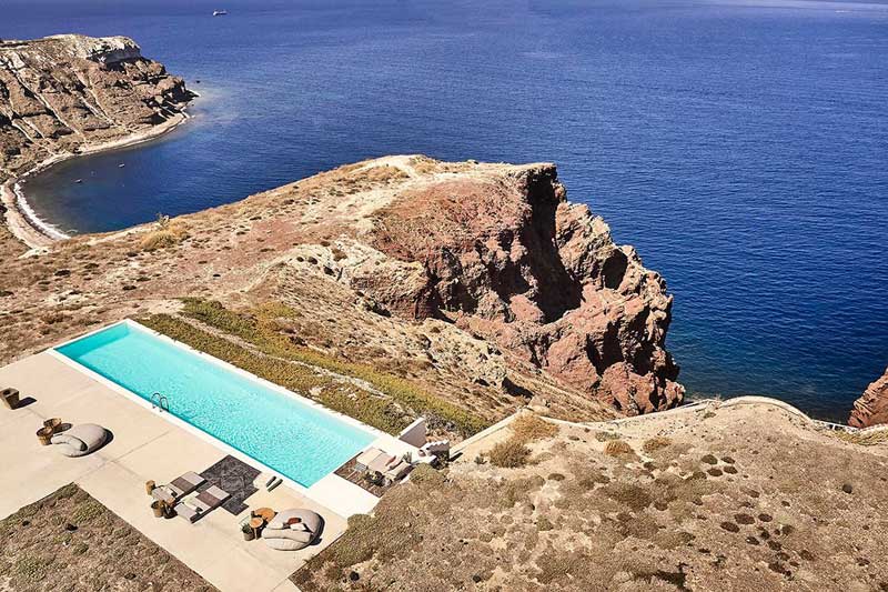 自然生態(tài)度假酒店坐落在圣托里尼島新月形狀的懸崖邊上,預(yù)計于今年5月初開放。在阿克羅蒂里古城附近,游客可以看到來自破火山口附近的碧藍(lán)海水和斑斕陡峭的熔巖層。這片建筑所帶來的與人類密切相關(guān)的體驗,進一步點亮了周邊未經(jīng)雕琢的自然世界。復(fù)古飾品、大地色調(diào)和手工家具裝點了酒店的15間套房,筆直的線條、圣潔的白色與靈活的曲線等典型的圣托里尼建筑元素也在酒店中得以充分展現(xiàn)。在這里,人們可以盡享奢華的希臘式住宿,品嘗當(dāng)?shù)鼐虏穗?,感受棲于懸崖邊的全景泳池,在戶外社交中心參加各種有益身心的活動。