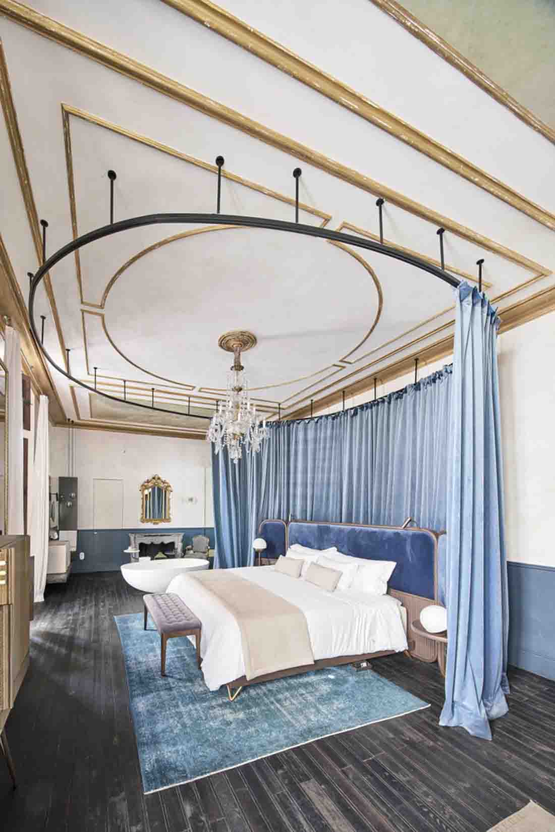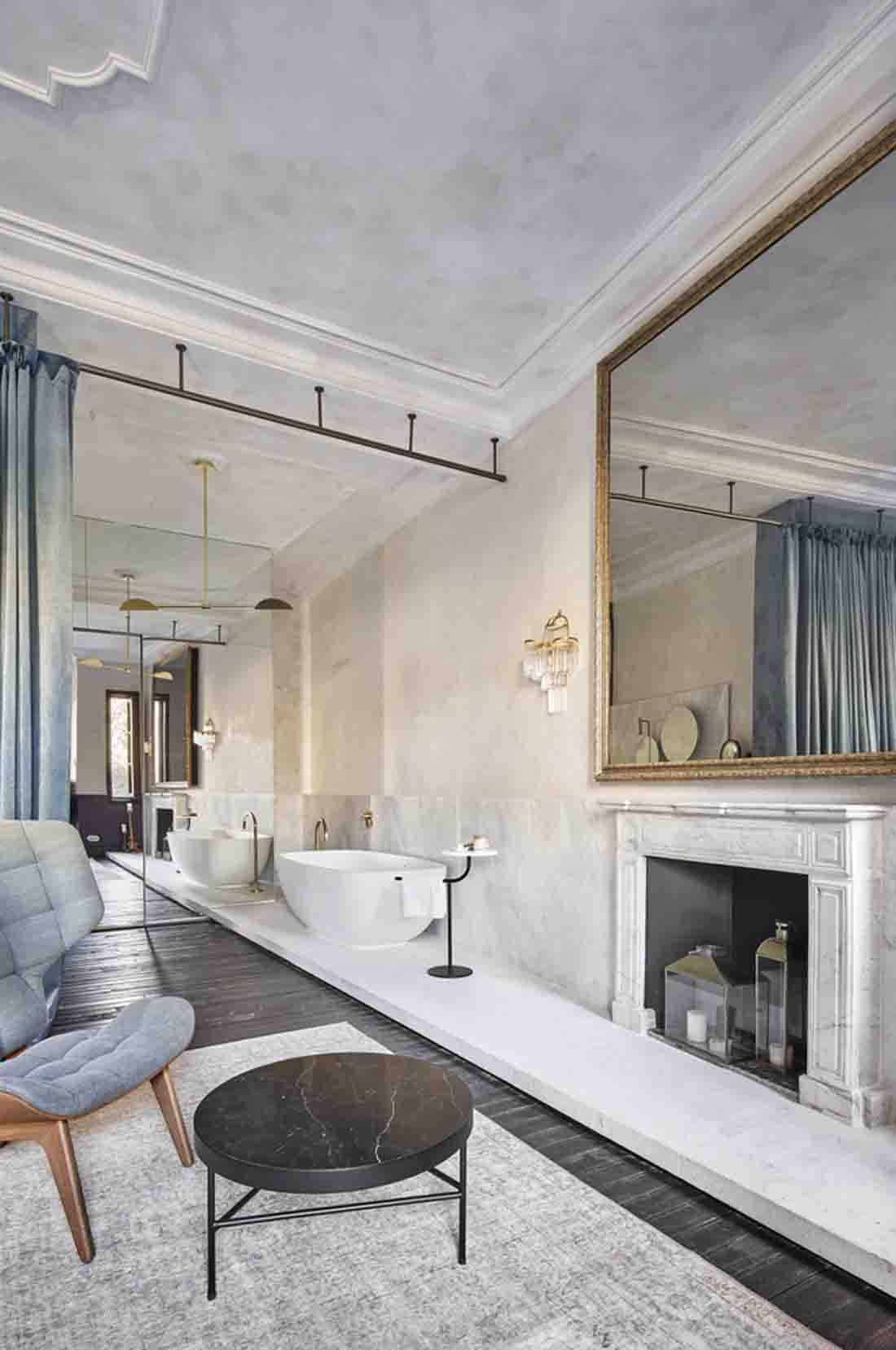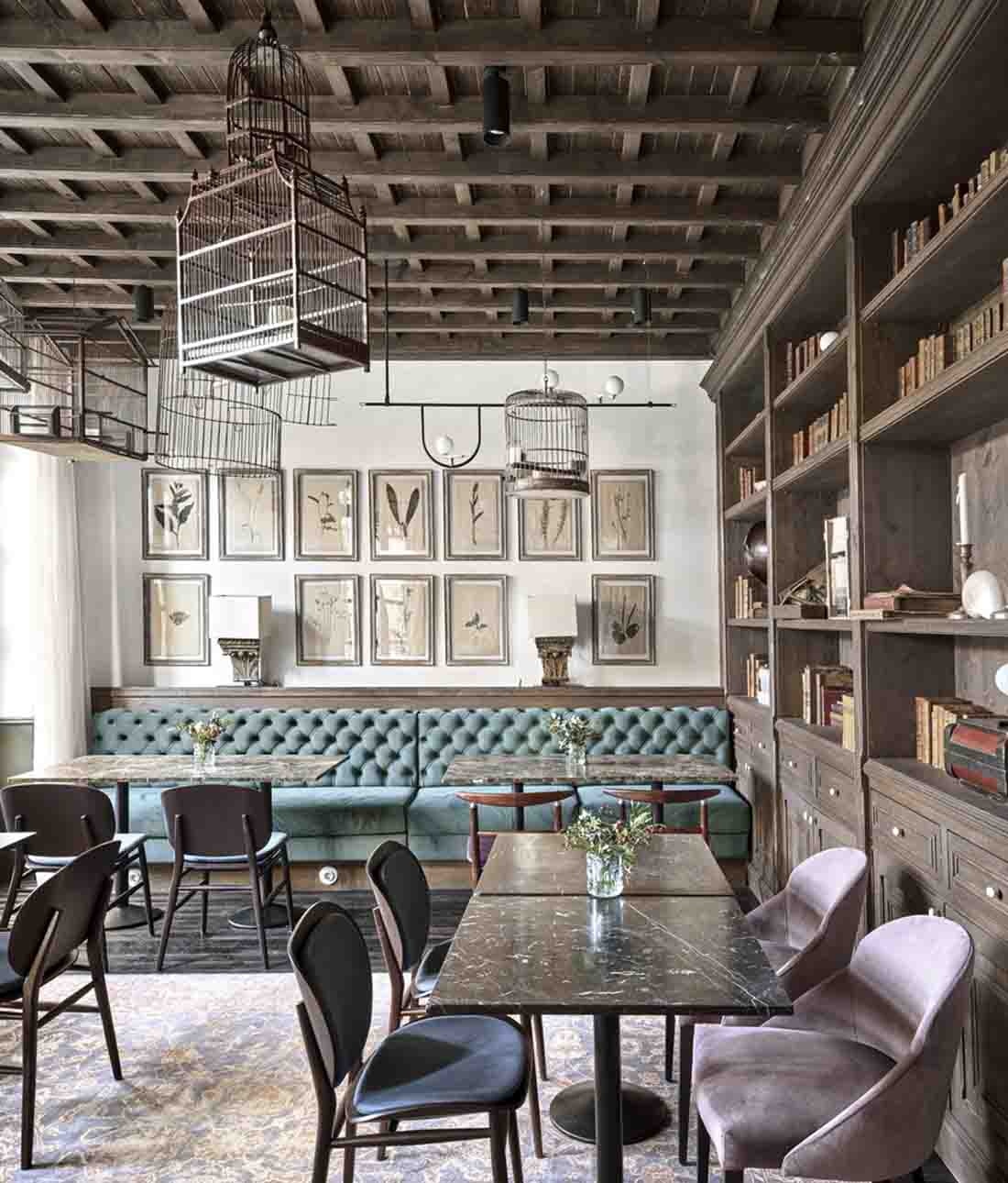 設(shè)計(jì)師旨在喚起比酒店更多的參觀房屋的經(jīng)歷。因此,客戶不是在酒店接待處而是在房子的門廳見面;找到的餐廳而不是餐廳,而是找到了居民用餐室,這些房間和客廳就像您在老房子中找到的那樣。該項(xiàng)目精心保留了建筑物中浪漫的氛圍,并與不同時期的干預(yù)和元素進(jìn)行了有意識的對比。這是對現(xiàn)有百年建筑雜交的尊重,它保留了過去的痕跡,并避免了房屋從未擁有過的輝煌過去的錯誤恢復(fù)。