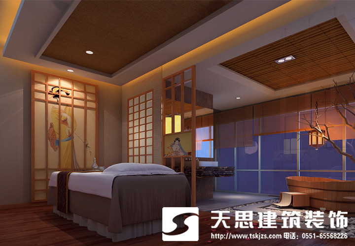 是指在整體設計中。spa房間的顏色種類不超過三種。整體以線條和整塊的色素來體現整體的干凈,舒適的感覺。