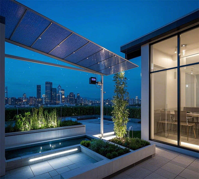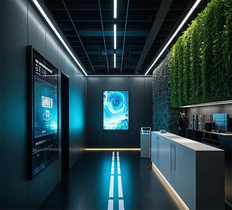 本設計充分考慮了辦公樓的不同功能區,包括大堂、開放式辦公區、會議室、休息區、經理辦公室、多功能廳、走廊和休閑露臺。每個區域有不同的設計重點,希望展示現代、科技感,同時兼顧舒適和環保,還要注意空間布局,比如開放式辦公區的協作性,會議室的隔音和多媒體設備,休息區的放松氛圍。