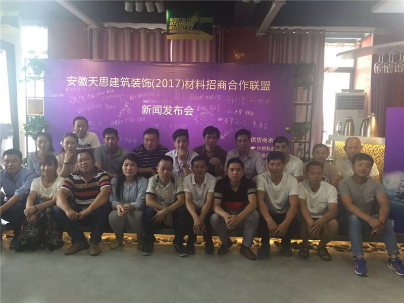 2017年6月4日,安徽天思建筑裝飾(2017)材料招商合作聯(lián)盟新聞發(fā)布會在合肥公司召開,來自合肥的三十余家知名材料商代表與天思裝飾公司領(lǐng)導(dǎo)齊聚一堂,共敘商情。在天思這個平臺上
